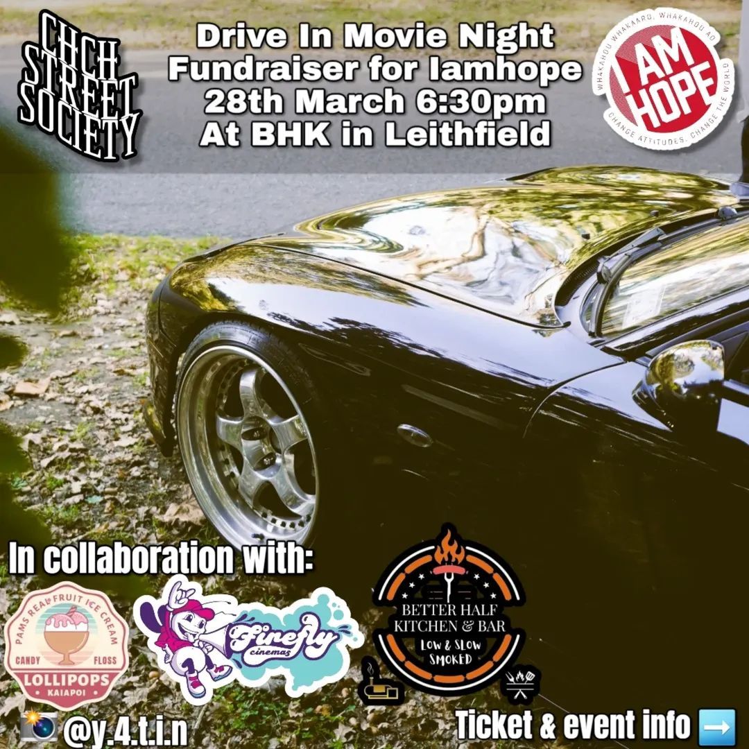 The event tells about a drive in movie at better half kitchen in leithfield. The profits will go to charity, limited tickets due or short space.